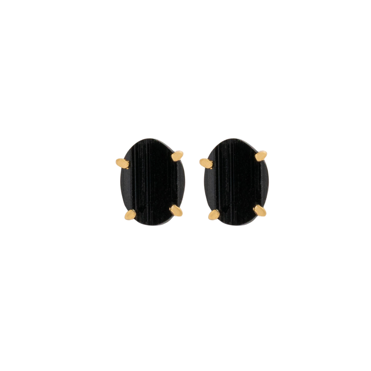 Item number ERS015196G Material Recycled Silver 925, Plated with 18K gold (75% pure gold) Stone Black Tourmaline Length 10mm Width 7,5mm Care Instructions All our Recycled silver 925, Plated with 18K gold (75% pure gold) jewelry is antitarnish treated to minimize the risk of oxidation. To maintain the longevity of your jewelry, you are discouraged from using the jewelry when bathing, exercising, showering or sleeping. Diverse -