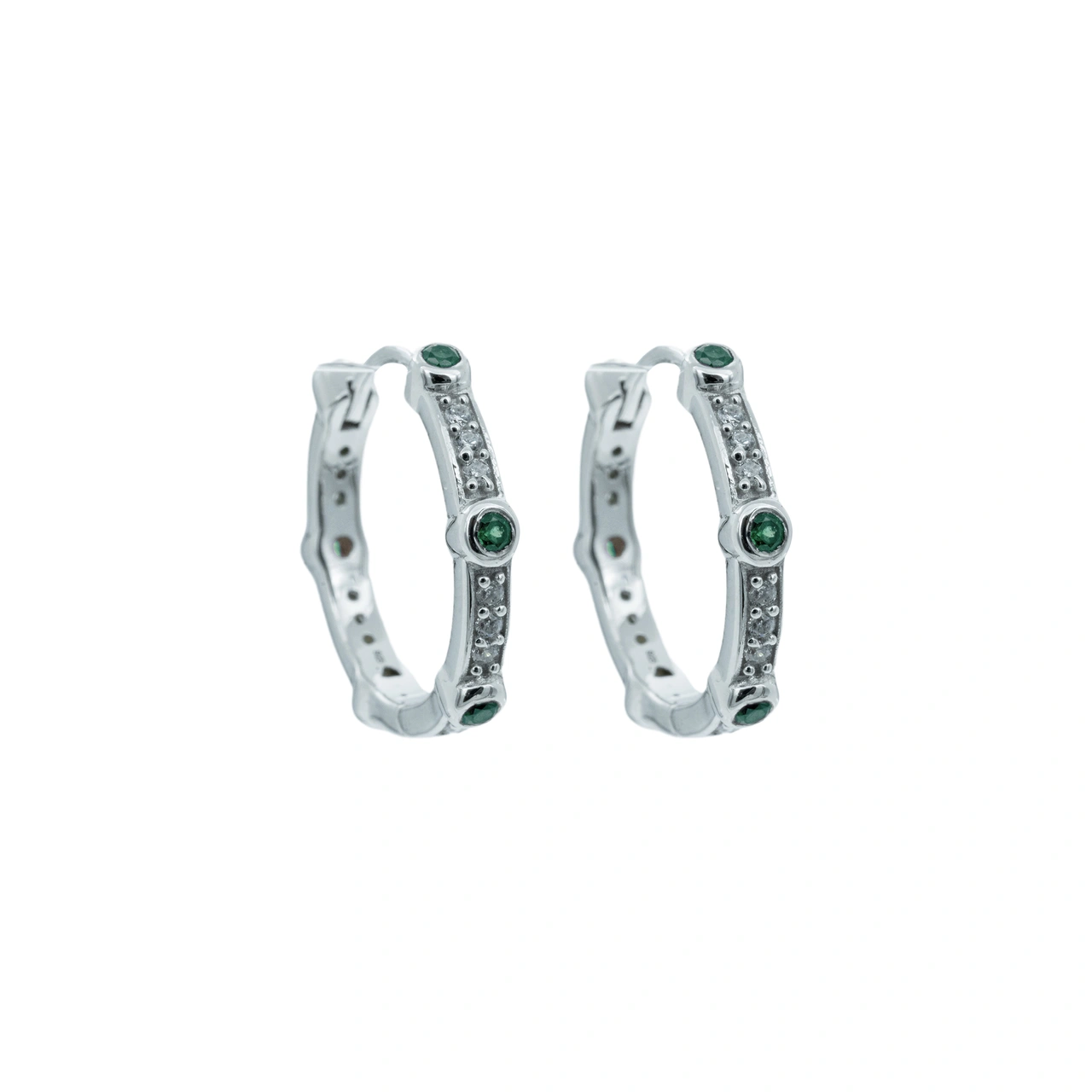 Item number ERS016863GR Material Recycled 925 Silver Stone Green Onyx + Cubic Zirconia Length 18mm Care Instructions All our Silver 925 Recycled jewelry is rhodium treated to minimize the risk of oxidation. To maintain the longevity of your jewelry, you are discouraged from using the jewelry when bathing, exercising, showering or sleeping. Clean your gemstones with a soft brush and warm water then wipe any remaining liquid with a dry cloth. Diverse -