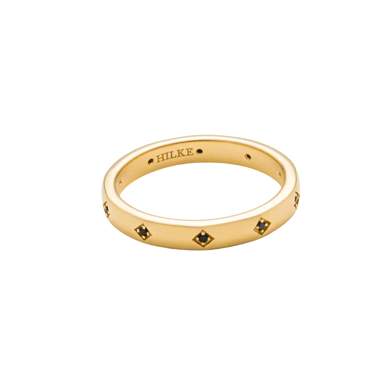 Item number RNS015074BG7 Material Recycled Silver 925, Plated with 18K gold (75% pure gold) Stone Black Onyx Width 17,3mm Care Instructions All our Recycled silver 925, Plated with 18K gold (75% pure gold) jewelry is antitarnish treated to minimize the risk of oxidation. To maintain the longevity of your jewelry, you are discouraged from using the jewelry when bathing, exercising, showering or sleeping. Diverse -