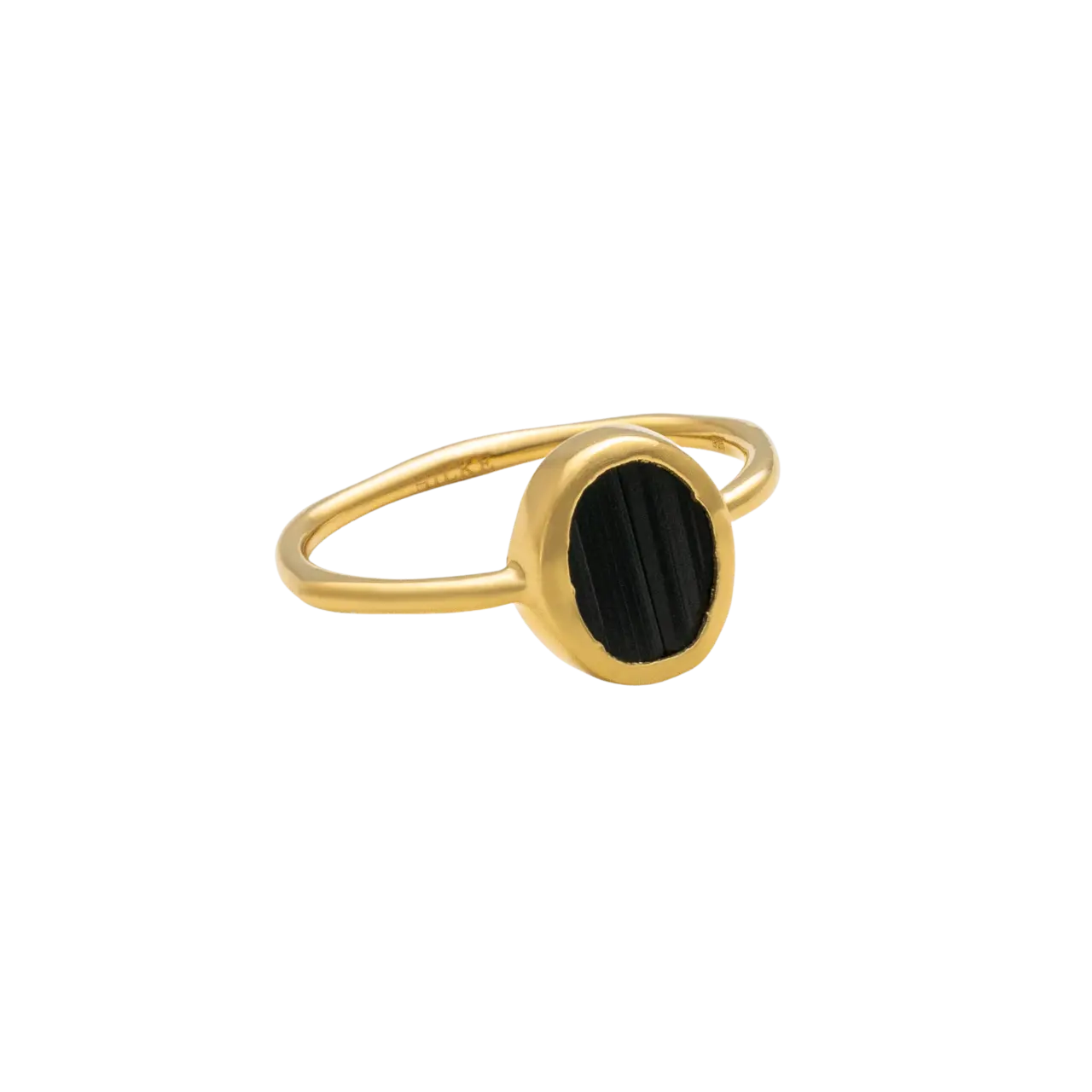 Item number RNS015201G7 Material Recycled Silver 925, Plated with 18K gold (75% pure gold) Stone Black Tourmaline Width 17,3mm Care Instructions All our Recycled silver 925, Plated with 18K gold (75% pure gold) jewelry is antitarnish treated to minimize the risk of oxidation. To maintain the longevity of your jewelry, you are discouraged from using the jewelry when bathing, exercising, showering or sleeping. Diverse -